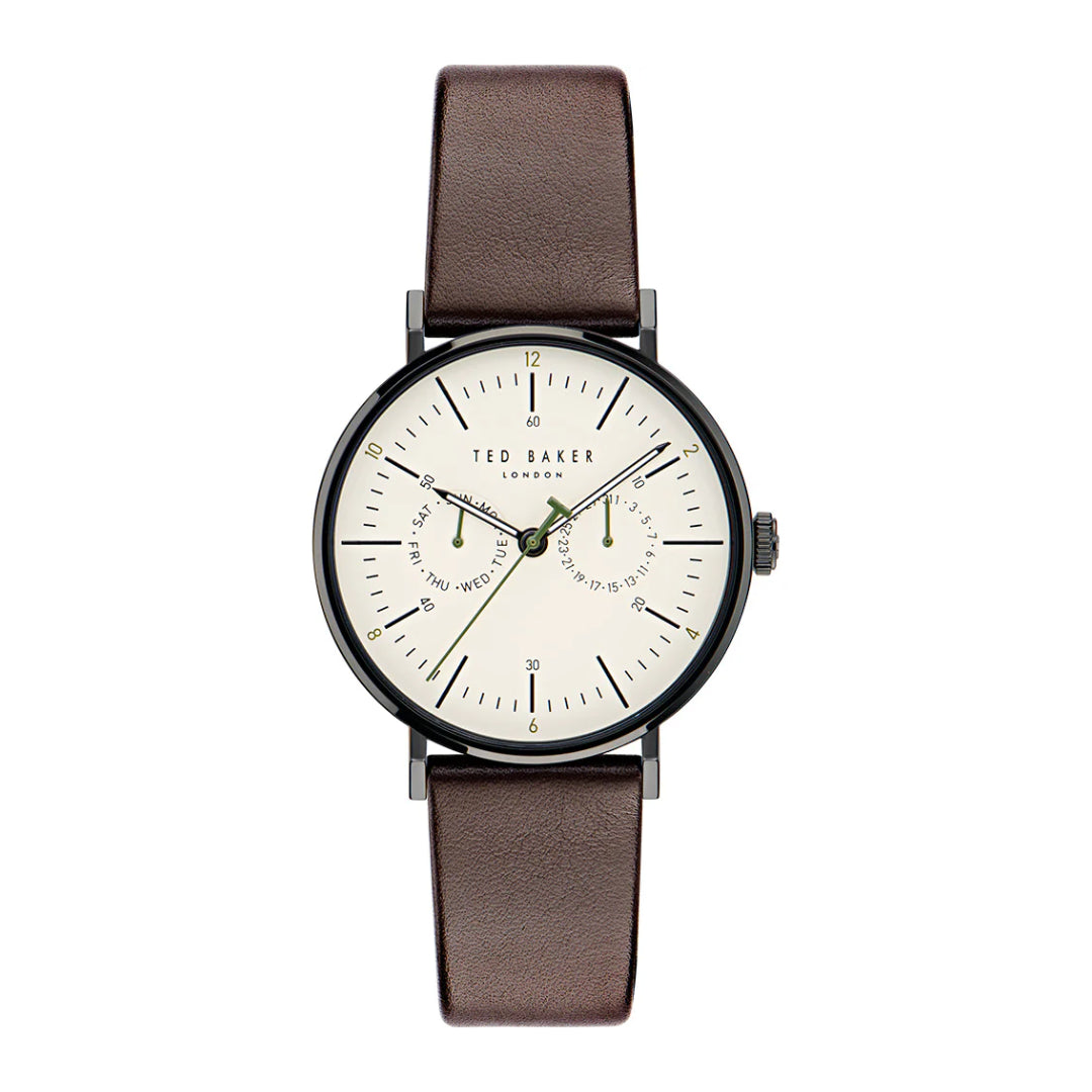 The Ted Baker Phylipa Gents timeless collection is an instant classic. An effortless clack 41mm case paired with a sleek cream multifunctional dial, brown genuine leather strap and buckls clasp. This timepiece is made to stand the test of time.