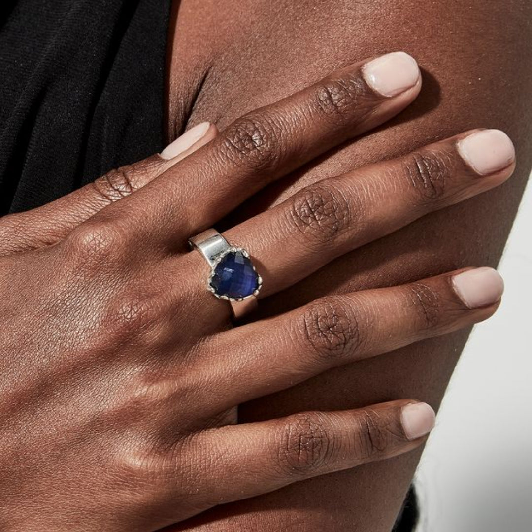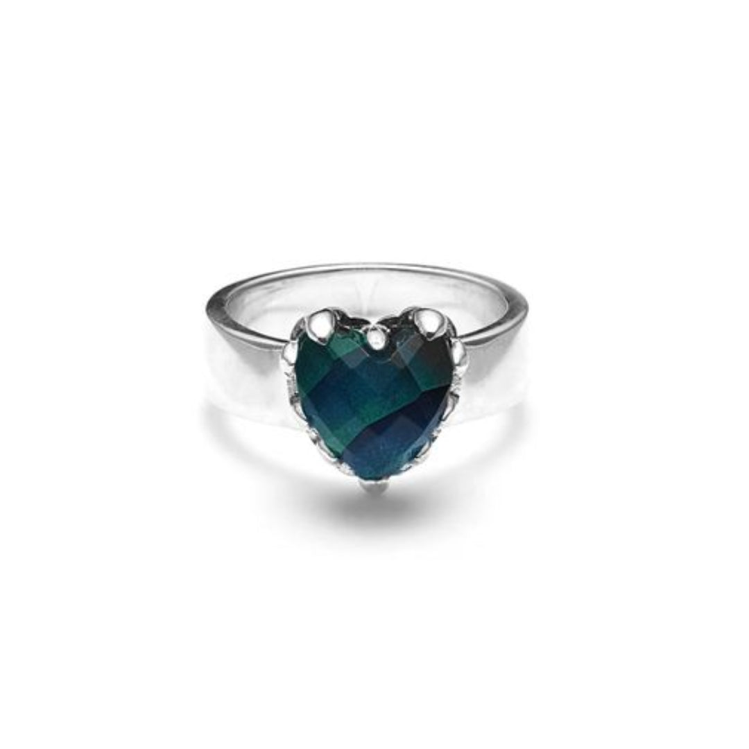 The iconic ‘Love Claw’ statement ring by Stolen Girlfriends Club features their new Mood Crystal a contemporary twist on the nostalgic mood ring. Crafted from facet-cut natural crystal on a liquid crystal base, these unique colour-changing stones elevate the traditional glass design.