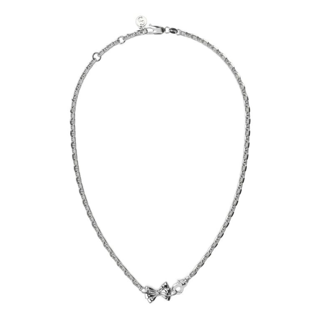 ‘Double Bow’ Pendant suspended on a sterling silver mariner’s chain.