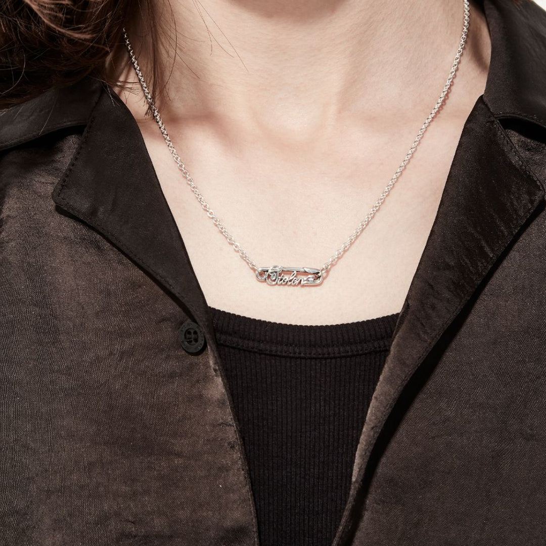 Created for Valentine’s Day, the Scripted Pin Necklace by Stolen Girlfriends Club