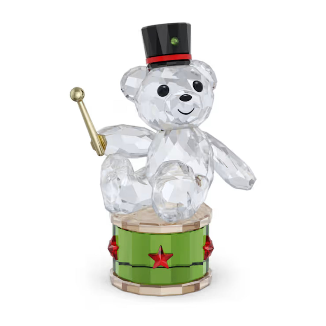 Continuing the tradition of Swarovski’s lovable Kris Bear, this year’s holiday Annual Edition is full of rhythm and joy. Crafted with 730 facets, the bear sits on a green drum, adorned in star-shaped red crystals. Champagne gold-tone metal is also used within the design to add a delicate touch of luxury. A wonderful figurine that will keep the music alive throughout the festive season. Decoration object. Not a toy. Not suitable for children under 15.
