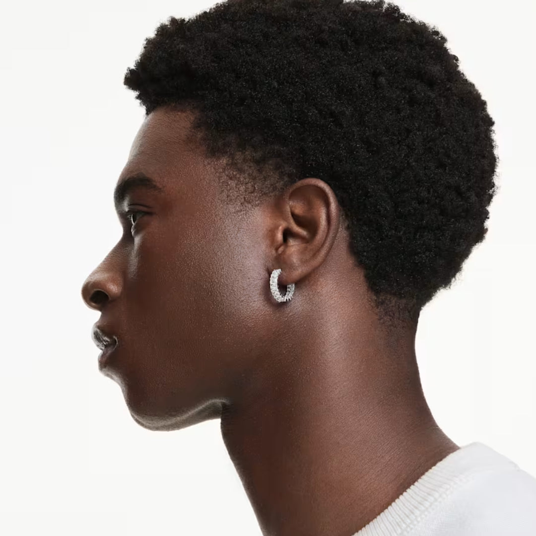 Reinvent your mini hoop style with this bright dose of Matrix light. Each rhodium plated earring is set with baguette-cut Swarovski Zirconia in prong settings, adding a halo of radiance to any outfit. Pair them with an all-around Matrix necklace for an all-over glow.